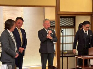 また、これだけ宮の杜のメンバーが増えますと、今まで新年会や納会を料亭で行ってまいりましたが、ひょっとすると料亭での宮の杜全体として例会を開けるのは今日が最後かもしれない。新しく入られた方や料亭が今日が初めてという方は、最後になるかもしれないのでこの料亭の歴史と文化というのを感じていただいて、今日は楽しんでいただければなと思います。