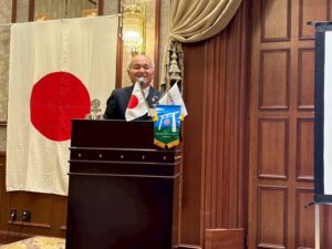 「カンボジアは歴史を知れば知るほど、やるべきことが見つかります。今回のカンボジア訪問も宮の杜スクールの開校式をはじめ会員の半分以上がご出席頂いています。1日前に観光もしてもらって、歴史とかを学んでもらってから、やっぱりその奉仕活動に入っていくと、いろんなことができるようになります。奉仕も親睦もある素晴らしい事業だと思います。ありがとうございます。」
